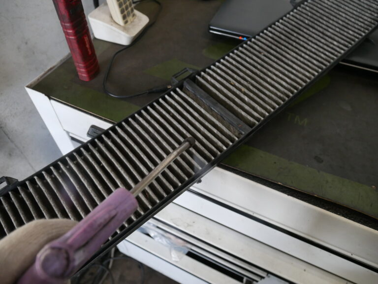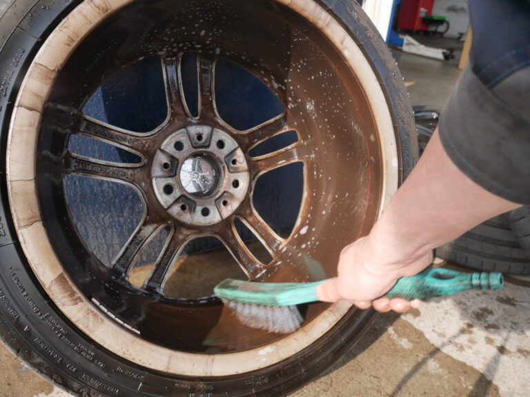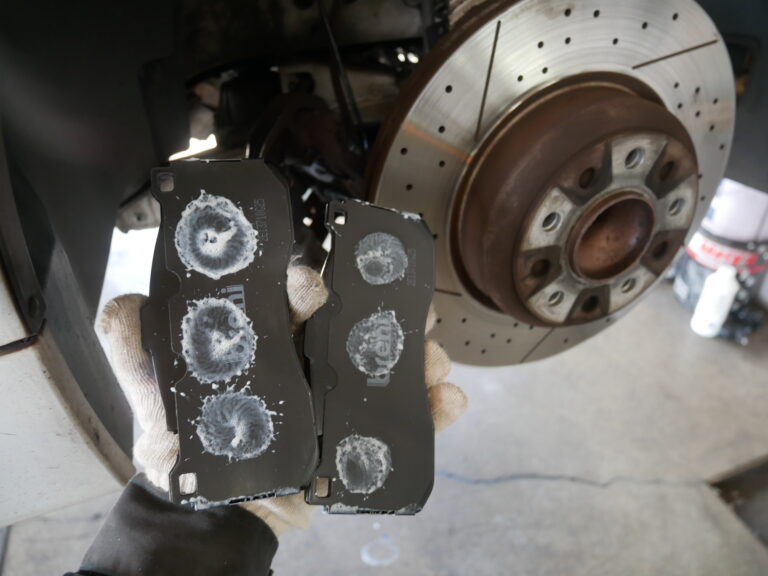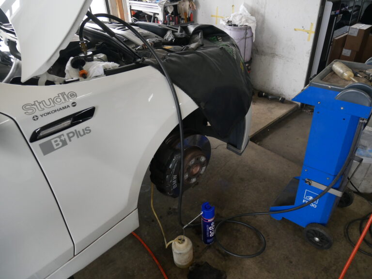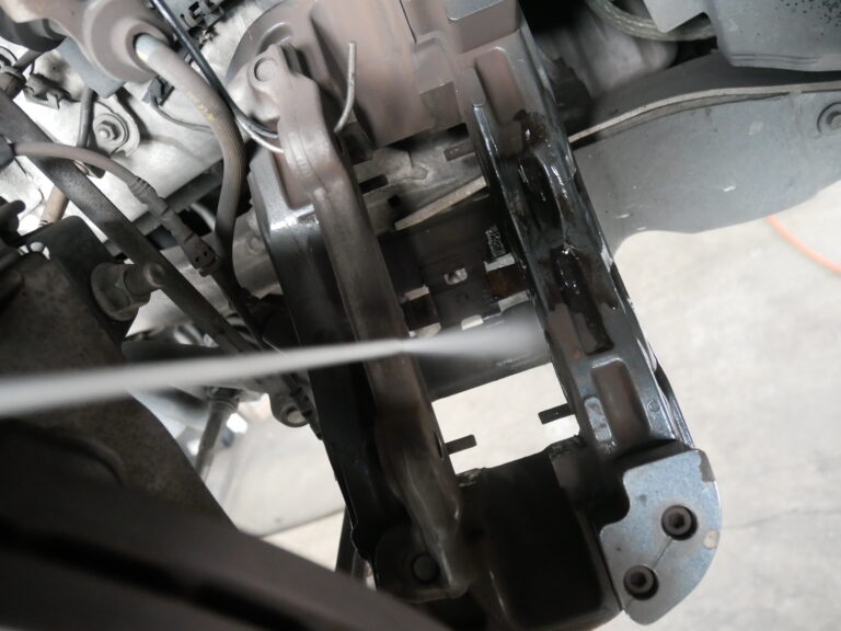 キャリパーシールからのフルード滲みの点検を行いキャリパーまわりの洗浄も行います。今回は、フロントパッドを