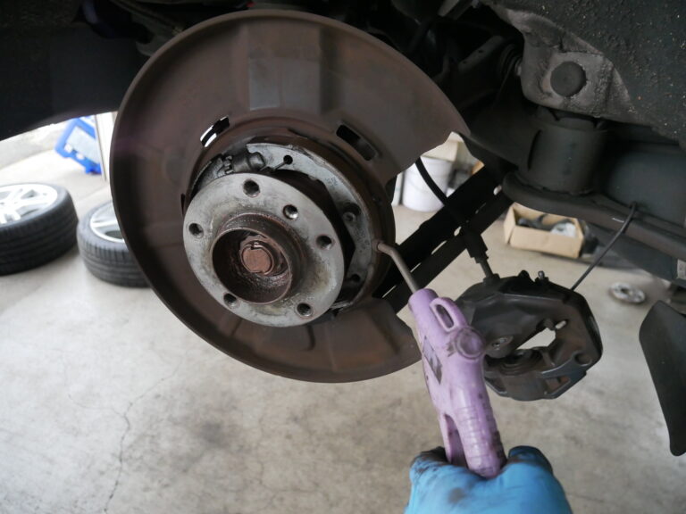 E87 130iのお客様の車検整備を行いました。当店の車検整備では、リアブレーキローターを取り外して