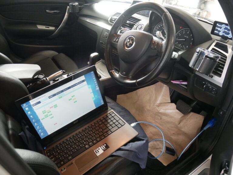 バッテリー診断を行いBMW専用テスター使用にてコンピューター診断を行いエラーチェック、消去