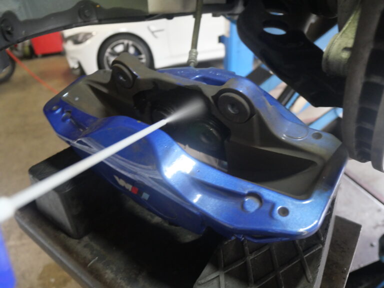 当店での交換作業では、キャリパーまわりの洗浄を行いキャリパーシールからのフルード滲みの点検を行い