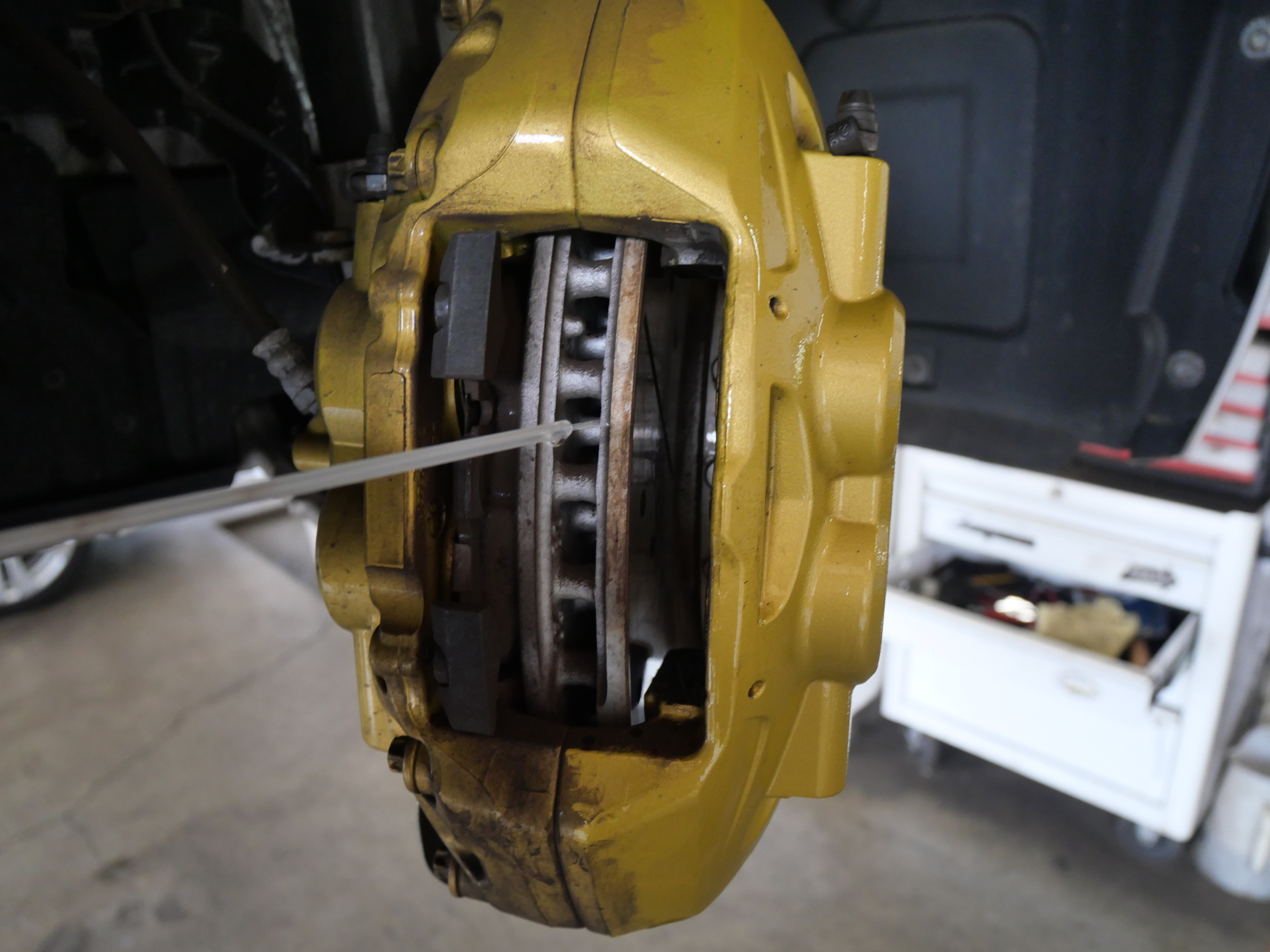 取り付けの際には、ブレーキキャリパーまわりの洗浄をしてキャリパーシールからのフルード滲みの点検を行い