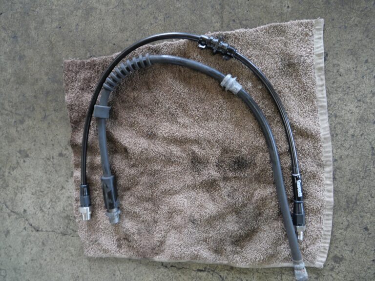 取り付け作業を行いました。グループMブレーキホースは、ステンレスメッシュのブレーキホースで純正品に比べて