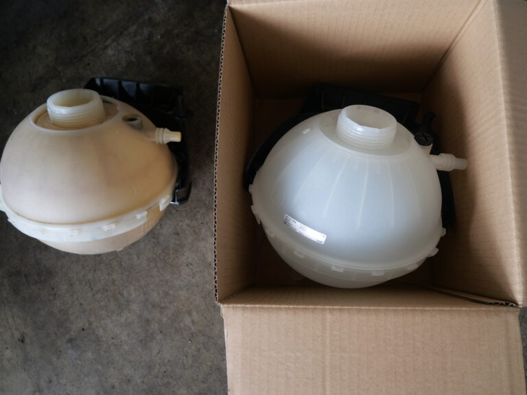 取り寄せして交換を行いました。同時に漏れたクーラントの汚れを綺麗にしました。交換後は、