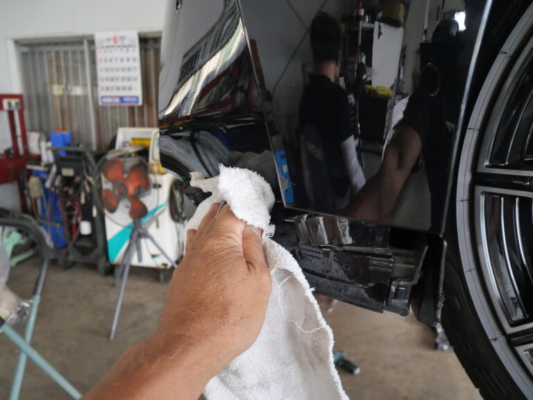 スポイラー取り付け面は、綺麗にしてからリップスポイラーをビスで固定して取り付けします。