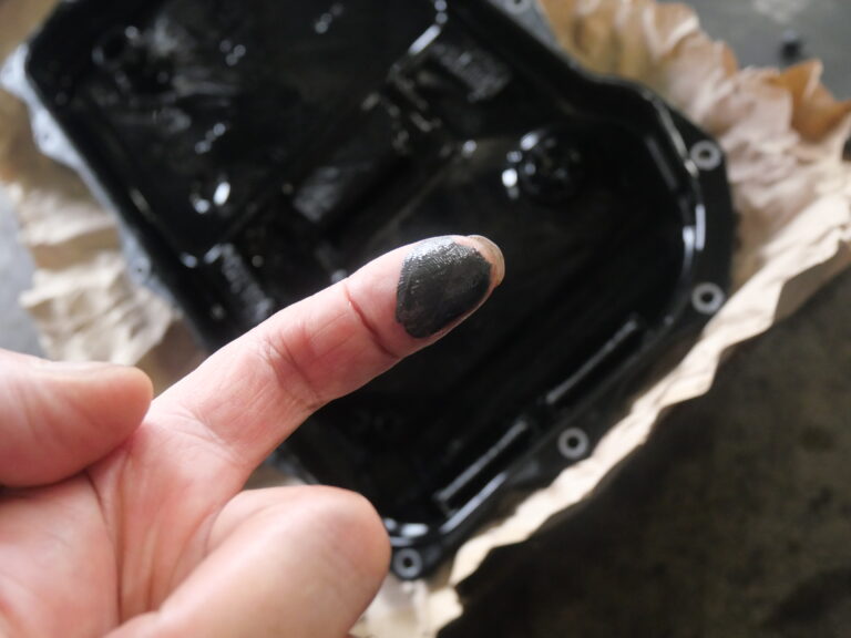 交換を行っております。オイルパンを外すと磁石が付いてまして磁石には、鉄粉が凄い状態です。
