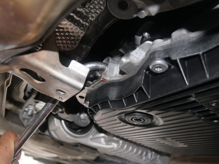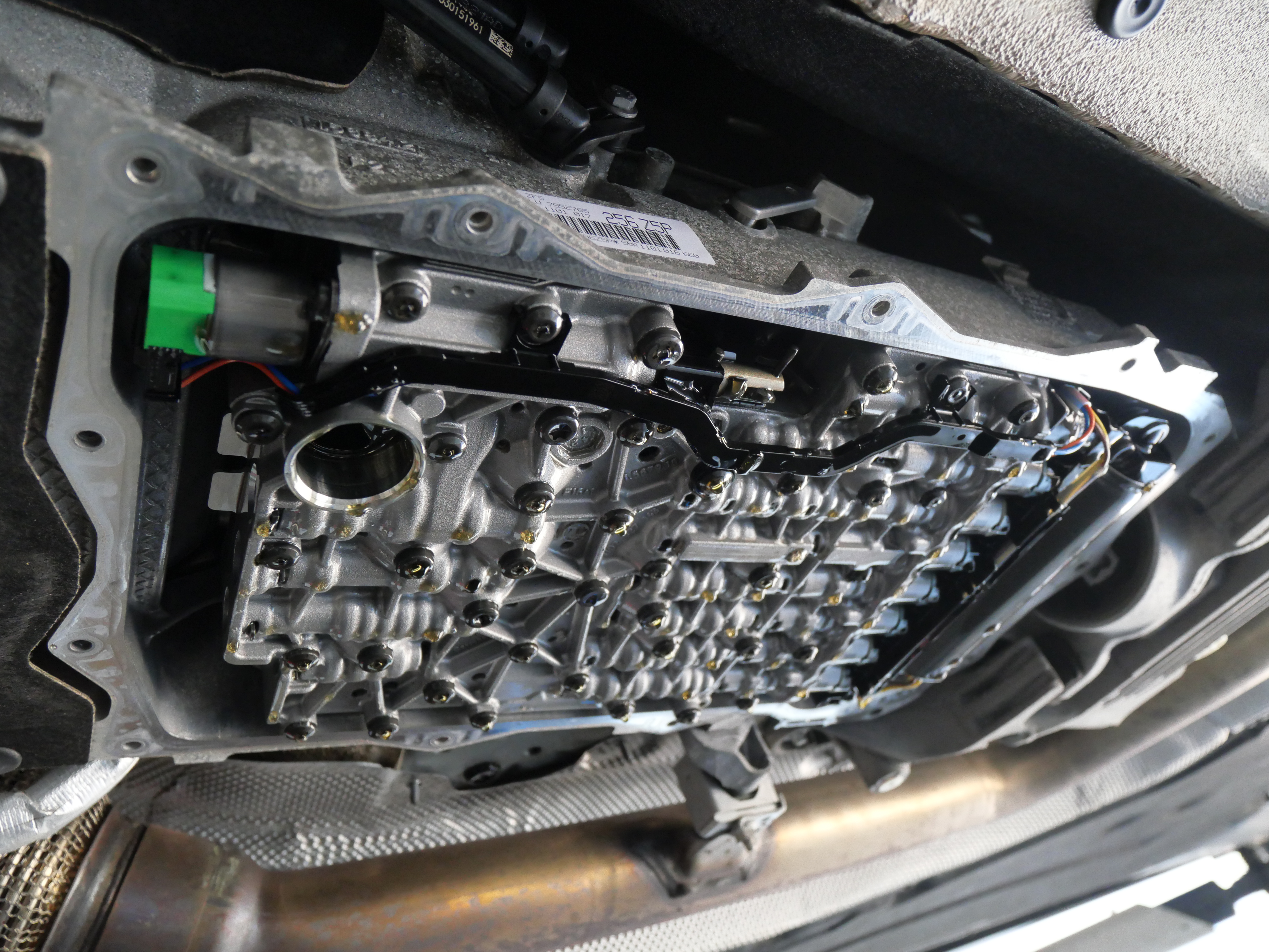 G31 530iのお客様もATF交換作業を行いました。こちらの車両もATオイルパン内にフィルターが内蔵されている