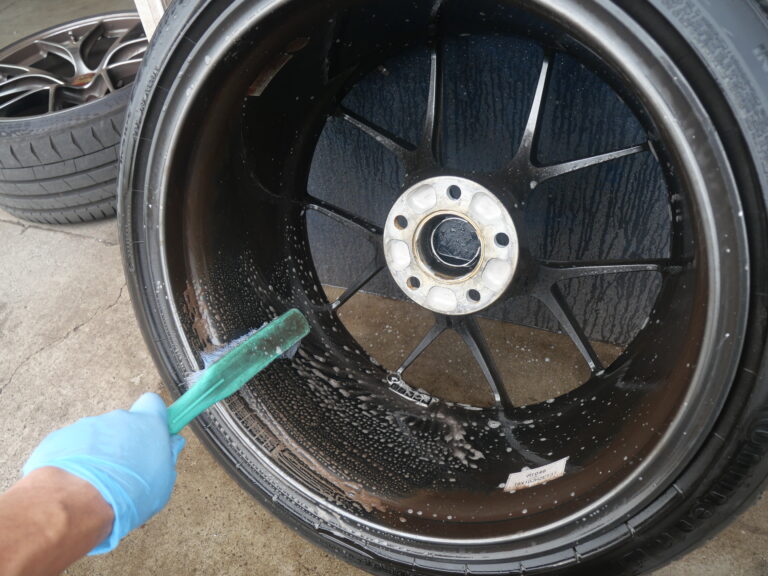 ハブ部分の錆取り、防錆処理を行いホイールは、裏も表も綺麗に洗います。