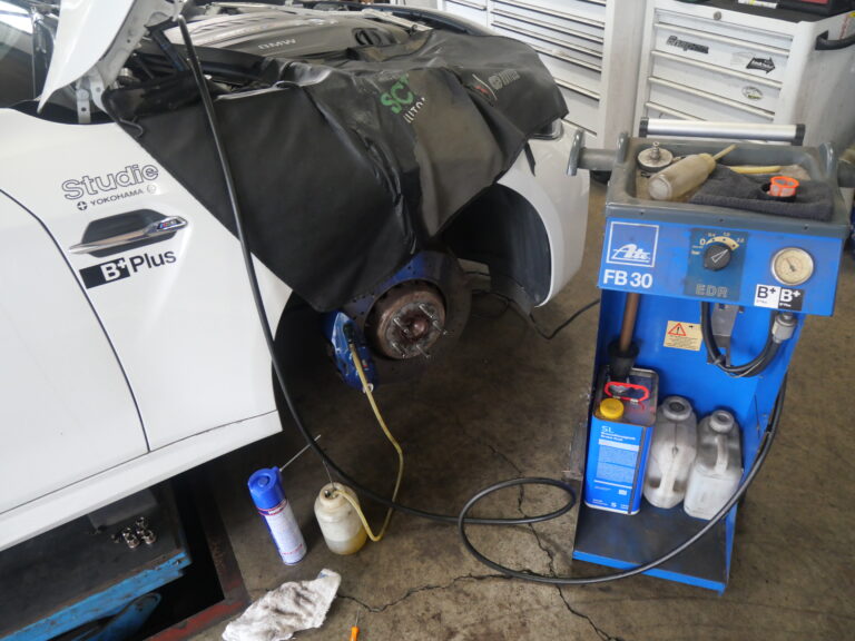 車検毎に交換をお勧めしておりますブレーキフルードは、純正同等品のDOT4使用にて交換を行い