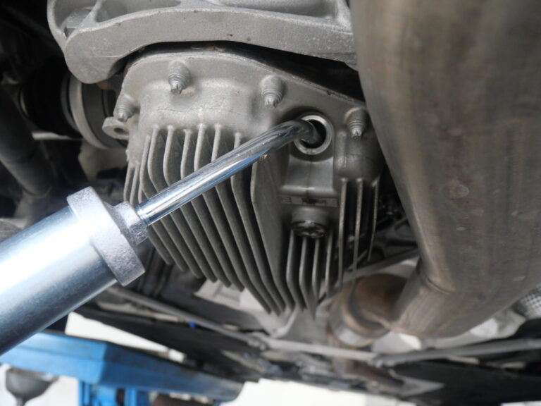 デフオイル交換は、ビープラスオリジナルルブロス製デフオイルLSD装着車用使用にて交換を行いました。
