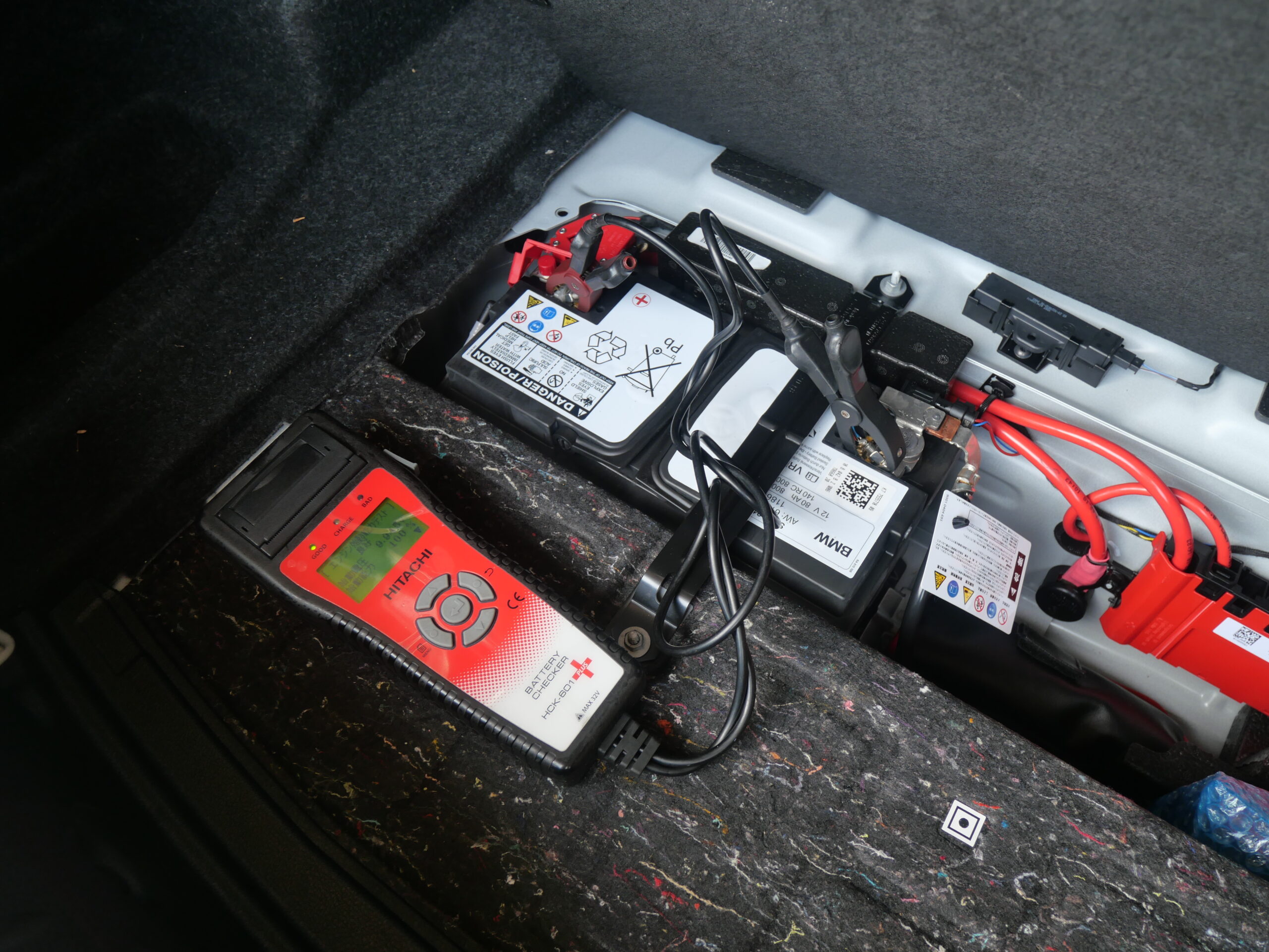 バッテリー診断を行いBMW専用テスター使用にてコンピューター診断を行いエラーチェック、消去