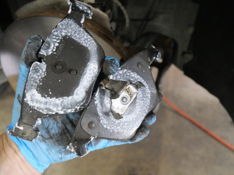 当店の車検整備作業においては、ブレーキキャリパーまわりの洗浄をしてパッドは、前後とも取り外して