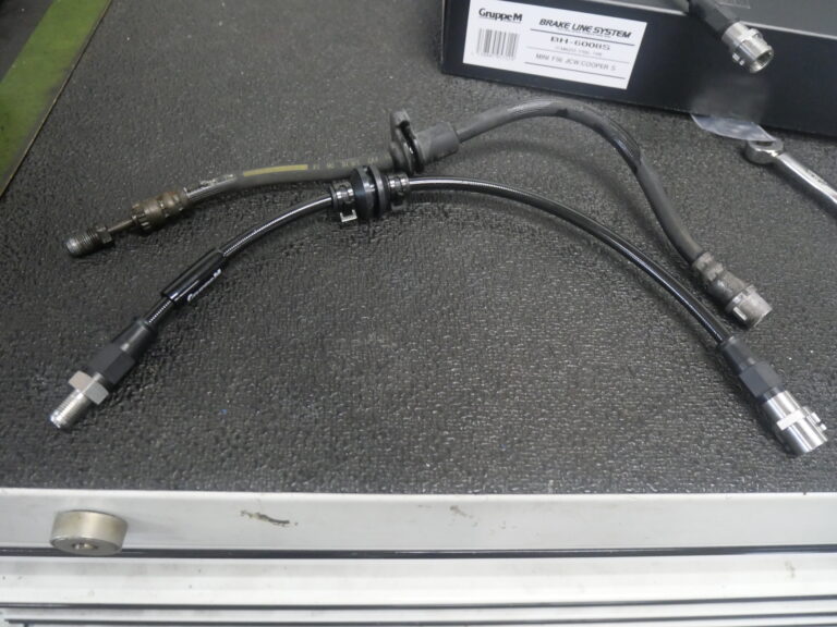 MINI F56クーパーSのお客様にグループMブレーキホース ステンレスの取り付けを行いました。