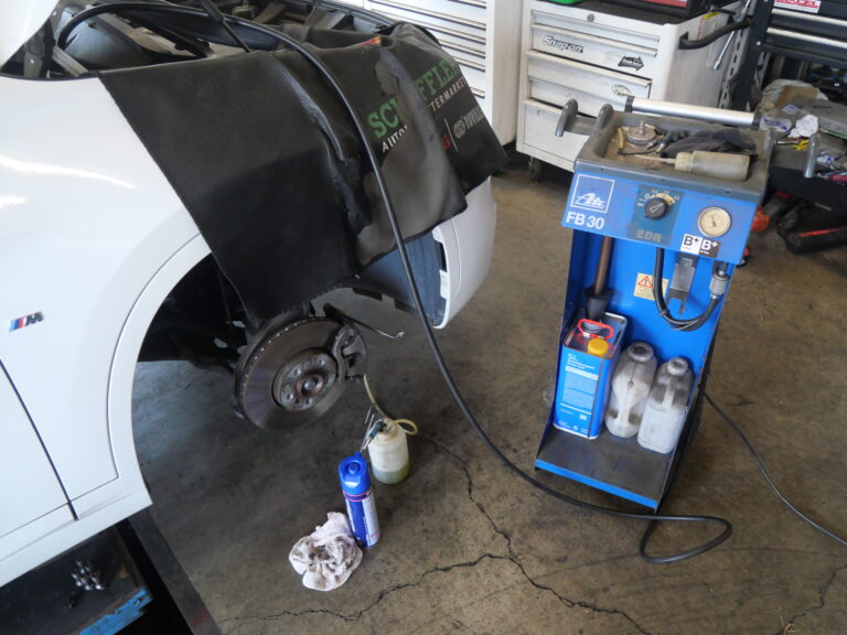 行いました。交換作業の際には、ブレーキキャリパーまわりの洗浄をしてキャリパーシールからの