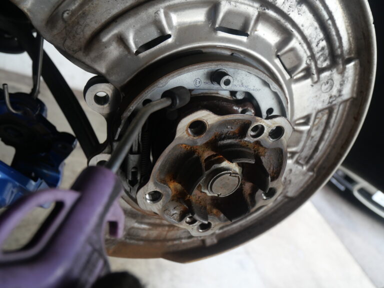 F82M4のお客様の車検整備を行いました。当店の車検整備では、リアブレーキローターは、取り外してブレーキシューまわりの