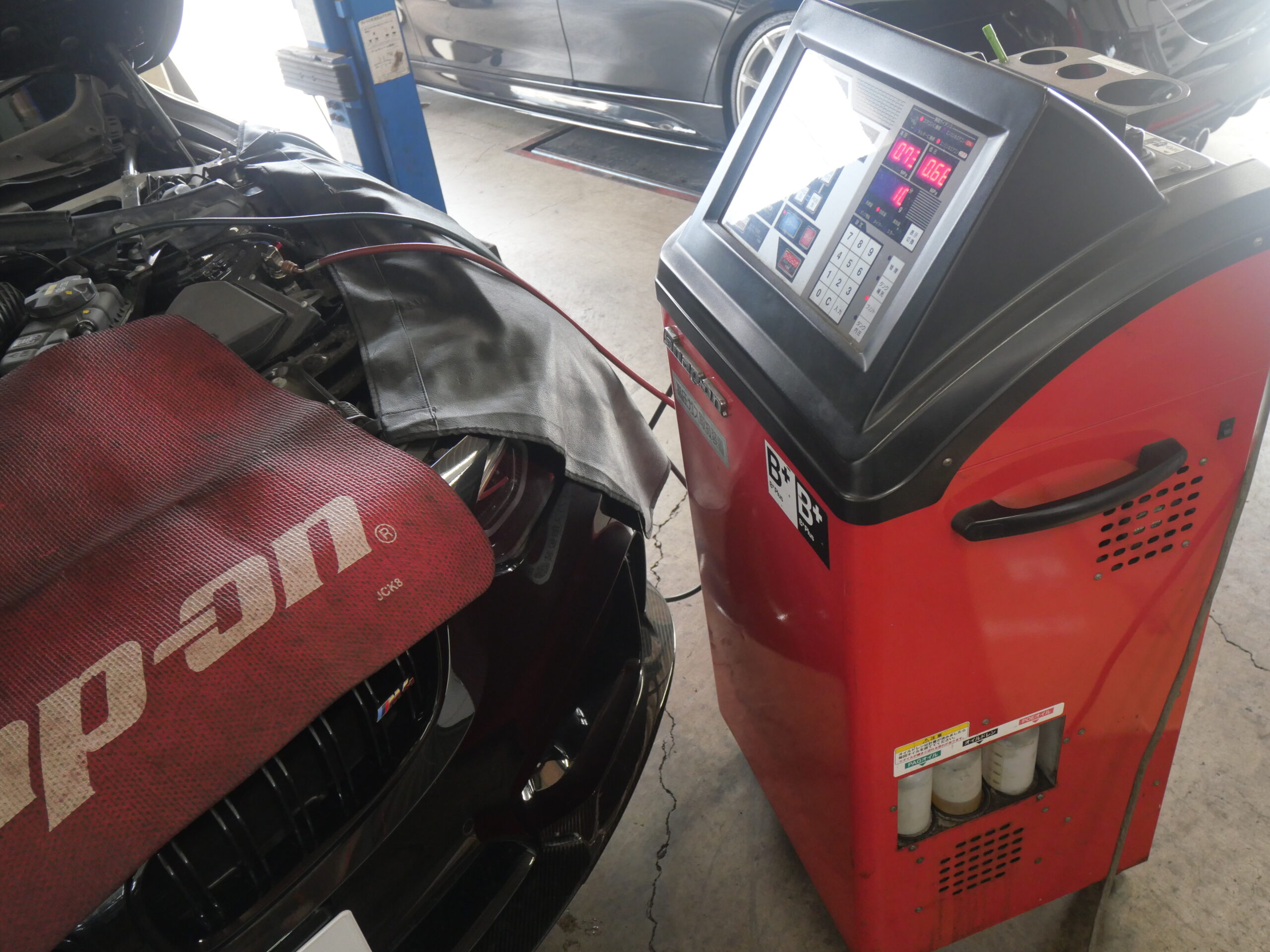 車検キャンペーンご利用にてスナップオンACガスクリーニングを施工しました。エンジンオイルの交換も