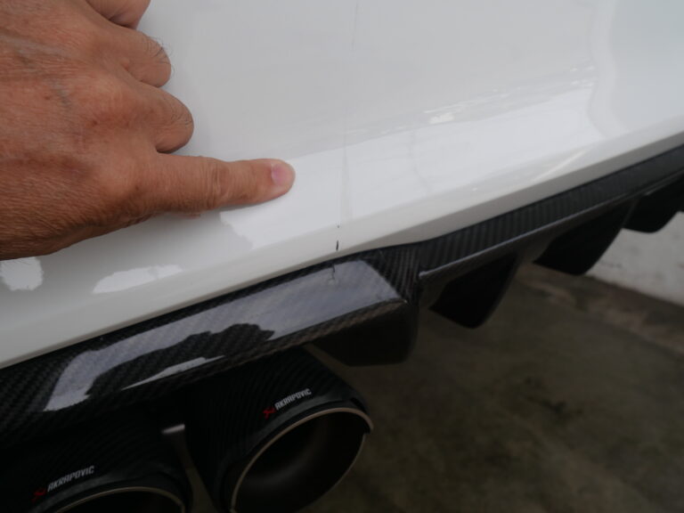 自動車保険の車両保険を使用してリアバンパーとディフューザーの傷の修理を行いました。