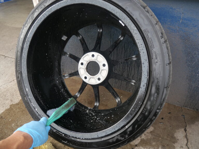 フルード滲みを点検を行いハブ部分の錆取り、防錆処理を行いホイールは、裏も表も綺麗に洗います。