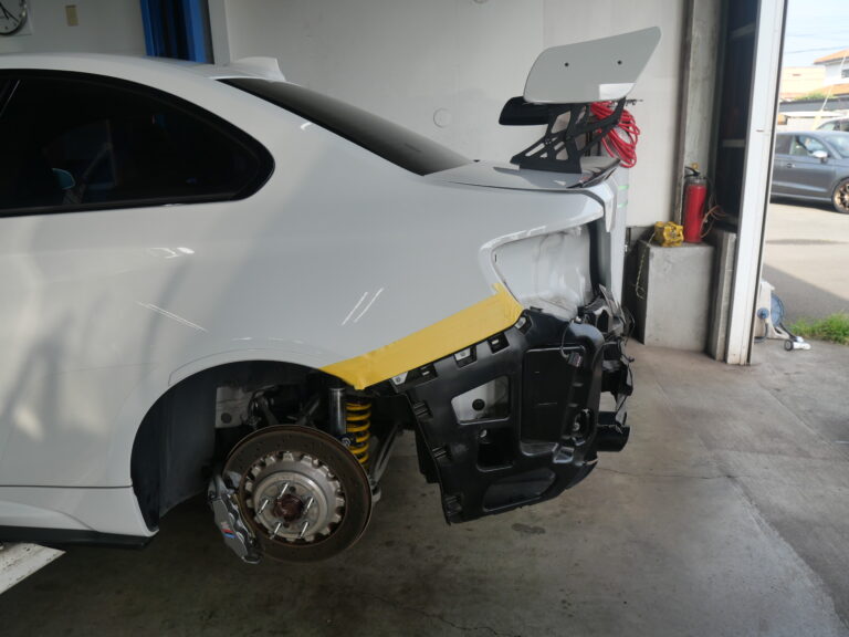 F87M2コンペのお客様の車検整備と自動車保険適応の修理作業を行いました。