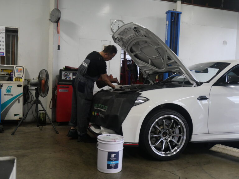 を施工してからビープラスオリジナルルブロス製オイルRW5-40にてオイル交換を行いました。こちらの作業は、