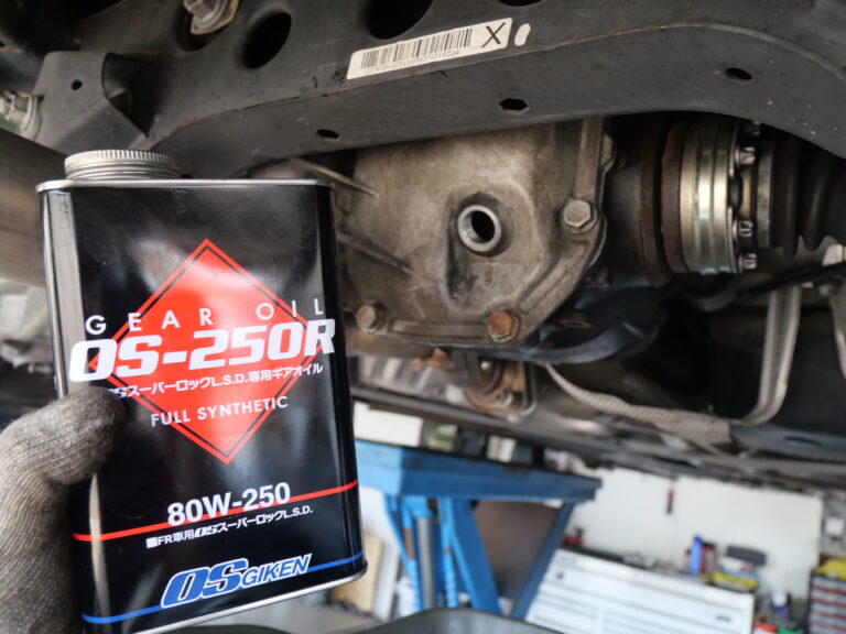 OS製スーパーロックLSD装着車なのでOS製専用LSD用デフオイル使用にてデフオイル交換も行いました。