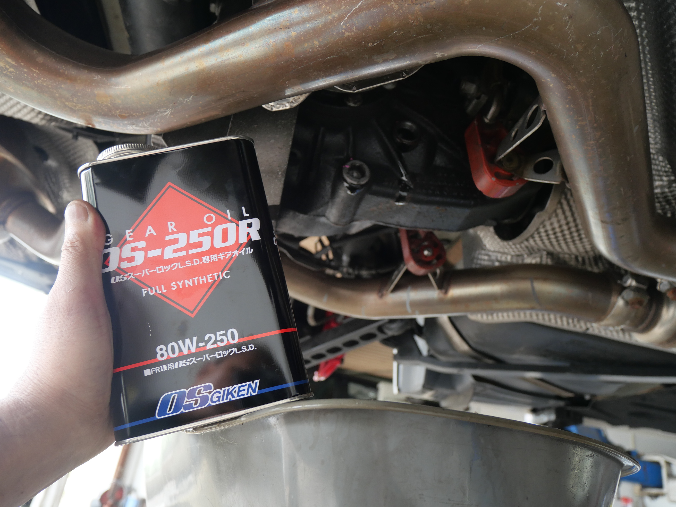 デフオイル交換は、OS製LSDが付いているのでOS製LSD専用デフオイル使用にてデフオイルの交換を