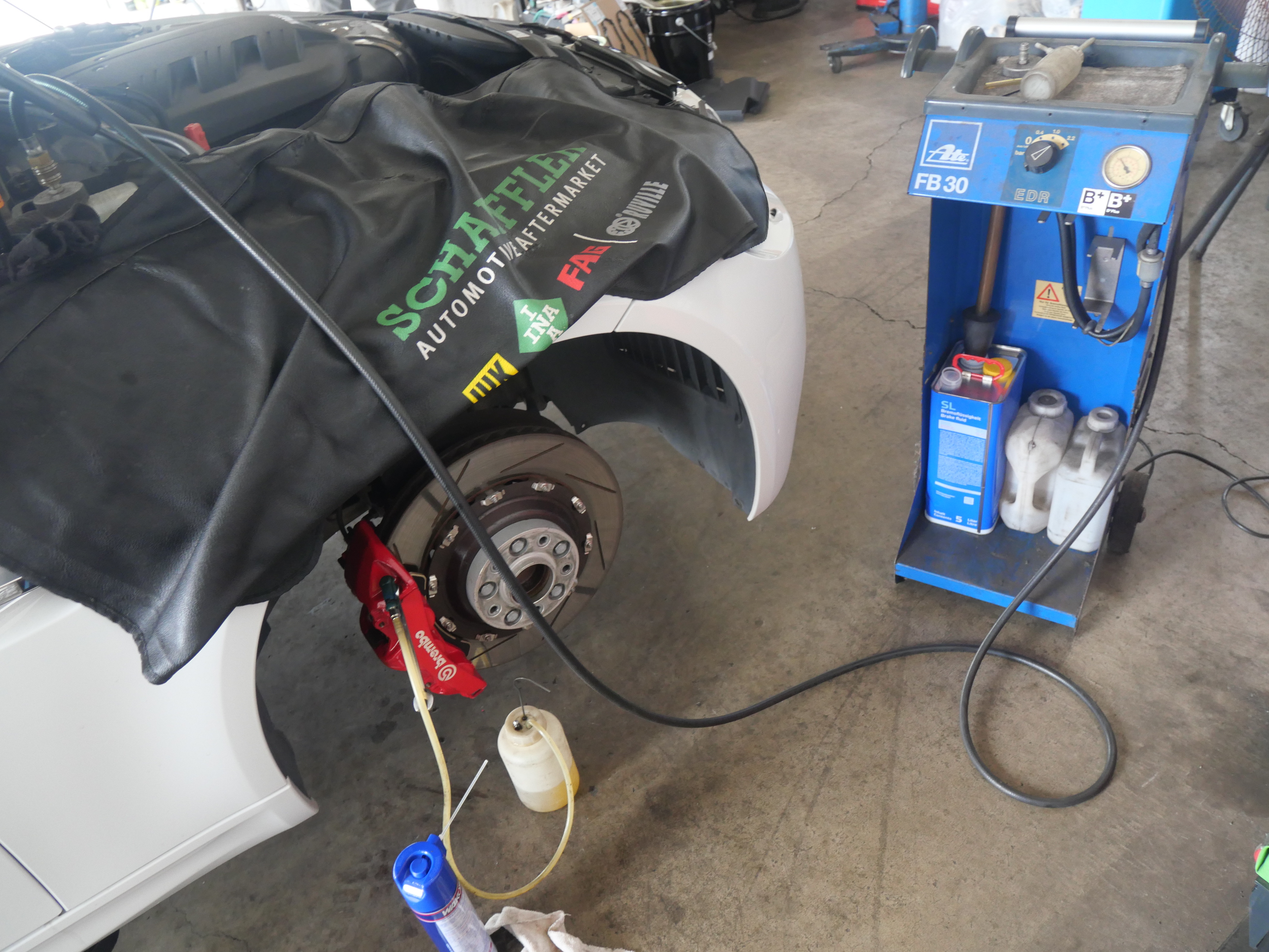 車検毎に交換をお勧めしておりますブレーキフルードは、純正同等品のDOT4使用にて交換を行い
