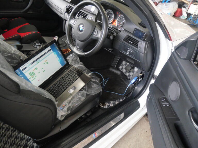 バッテリー診断を行いBMW専用テスターを車両に接続してコンピューター診断を行いエラーチェック、消去