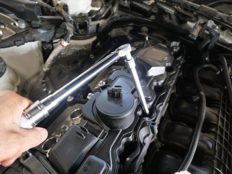 カバーを外した際に古いガスケットが残るので綺麗にしてからトルクレンチを使用して組み付けしていきます。
