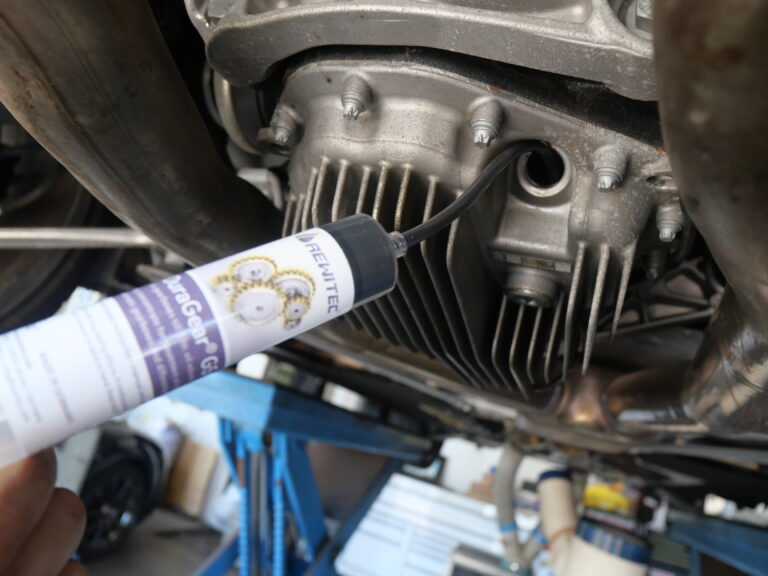 フルードを注入します。今回は、同時にレビテックG5を注入しました。フルード量の調整は、BMW専用テスターを