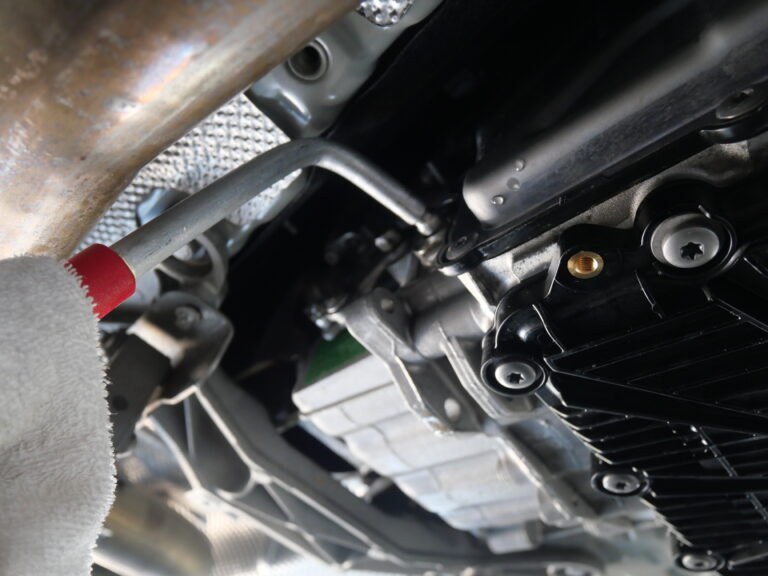 F80M3のお客様のDCTフルード交換作業を行いました。DCTフルード交換の際には、純正部品のオイルパン