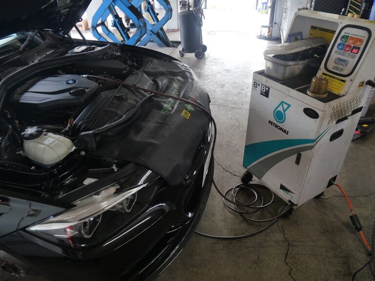 DPFクリーニング施工後は、ペトロナスエンジンクリーニングを施工してからビープラスオリジナルルブロス製