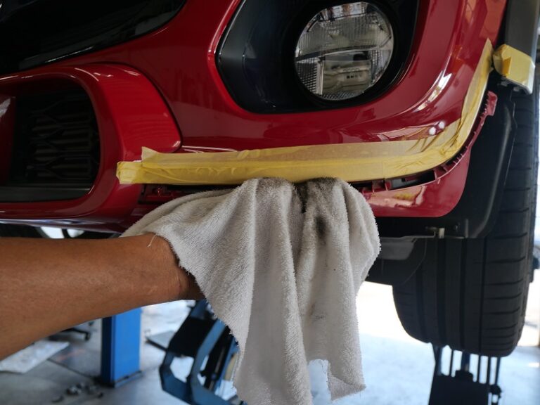 純正のスポイラー部分を取り外してバンパー部分を綺麗に洗浄してから3Dデザイン製リップスポイラーを