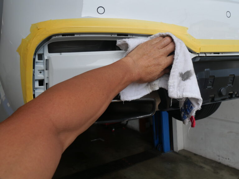 リアディフューザー取り付け時は、リアバンパーにマスキングをしてバンパーに傷が付かないように作業します