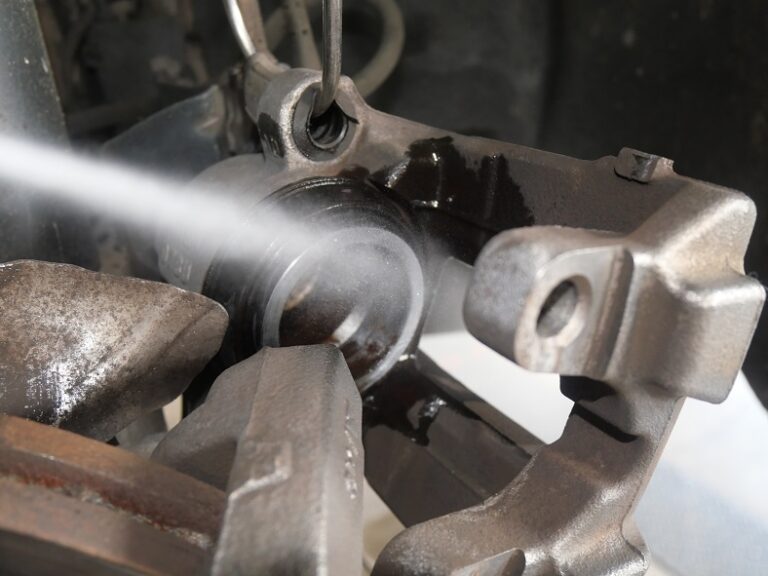 グリスアップを行いキャリパーまわりの洗浄をしてキャリパーシールからのフルード滲みの点検を行い