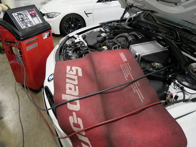 F82M4のお客様の12カ月点検作業を行いました。昨日のブログと似てる車両で左ハンドルのマニュアル車両