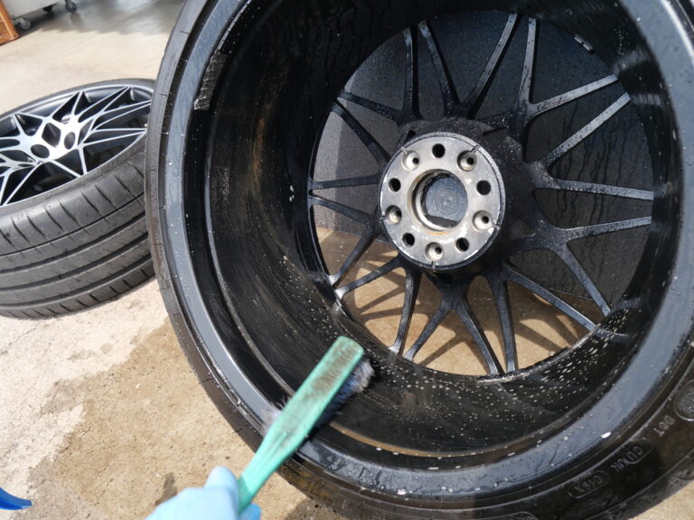 ハブ部分の錆取り防錆処理を行いホイールは、裏も表も綺麗に洗います。