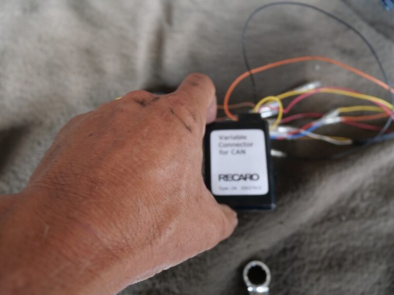 を使用して取り付けです。レカロシートレールには、CANバスアダプターも付属でして車両側の配線に接続して