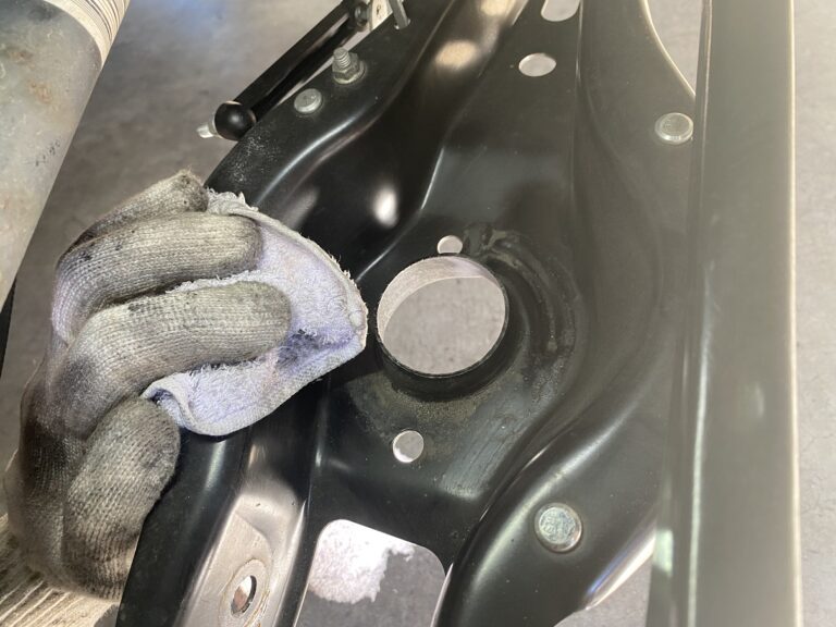 リアのスプリングがおさまるアーム部分に砂利がたまる傾向があるので全て取り除いてから新品のスプリングを