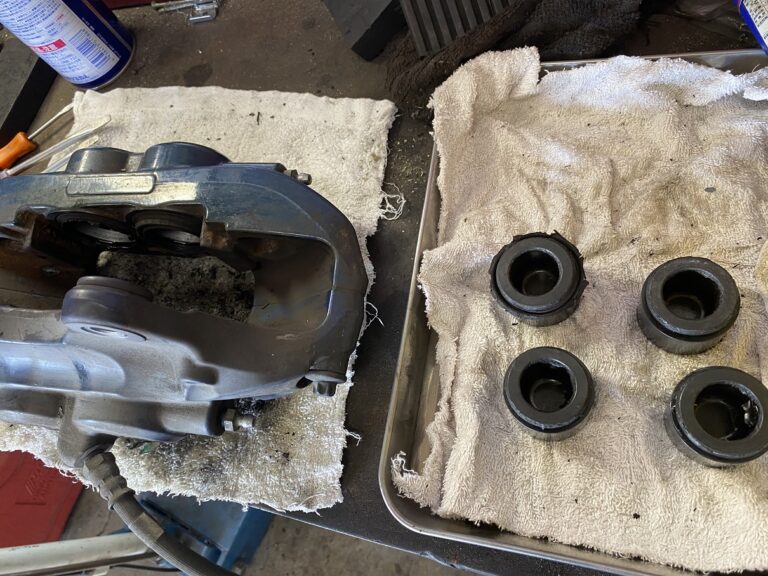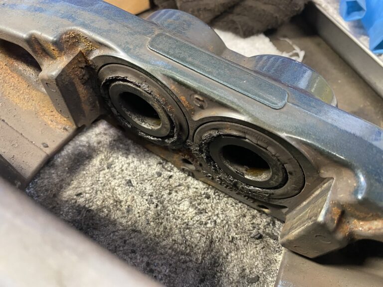 こちらのお客様は、サーキット走行もされているようでブレーキキャリパーのダストシールは、高熱によりボロボロに・・・