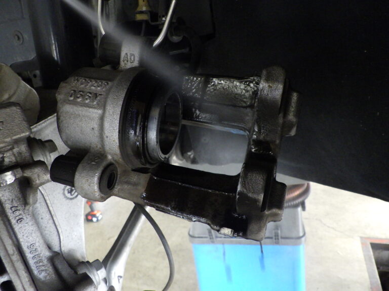 キャリパーシールからのフルード滲みの点検を行いキャリパーまわりの洗浄を行います