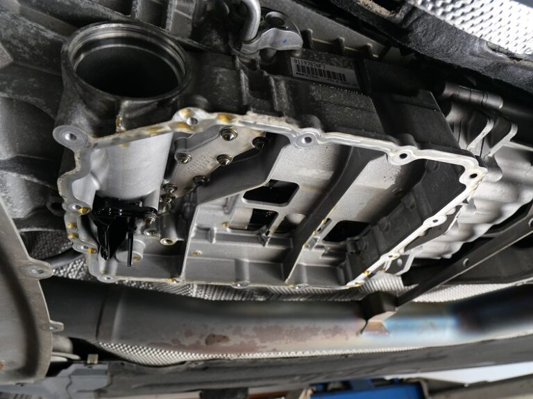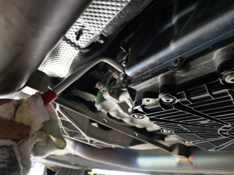 同時にDCTフルード交換を行いました。DCTフルード交換の際には、オイルパン内とミッション横に