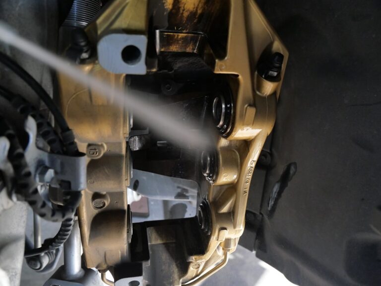キャリパーシールからのフルード滲みの点検を行いキャリパーまわりの洗浄を行います