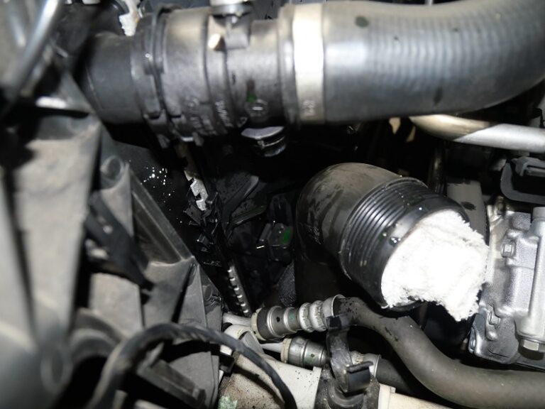 同時にクーラントホースのつなぎ目から冷却水が漏れていたので部品交換で修理を行いました。