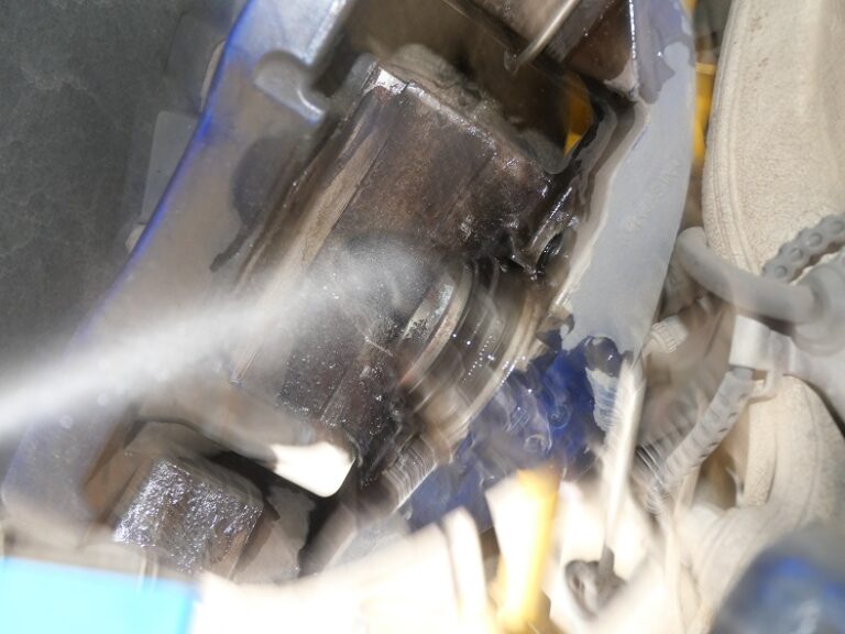 キャリパーシールからのフルード滲みの点検を行いキャリパーまわりの洗浄を行います