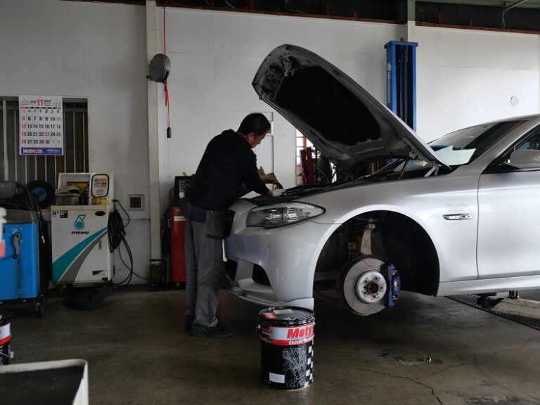 エンジンマウントの目視の点検を行い脚関連のパーツが社外品の場合には、増し締めを行います。
