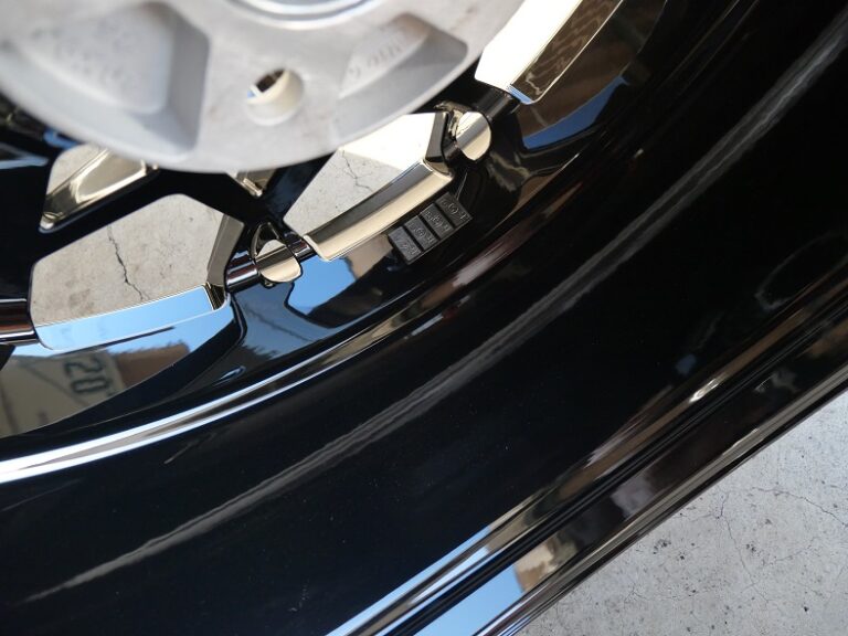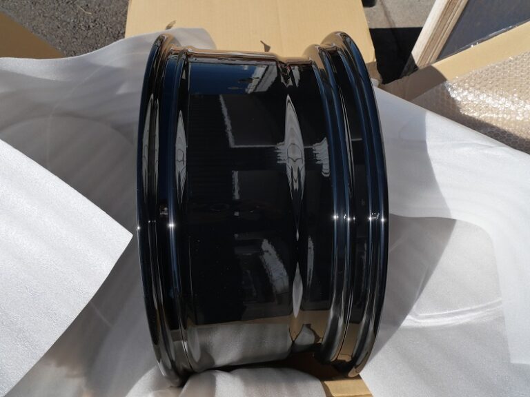 施工により艶あり黒にしました。仕上がりは、市販品の塗装よりも丁寧で艶も深くリムの中まで綺麗に塗装してあります