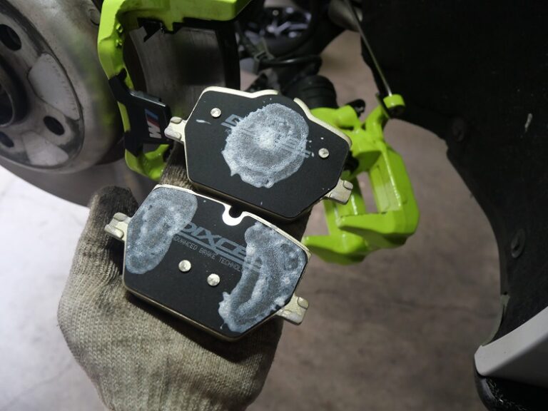 同時に低ダストブレーキパッドのディクセルタイプMに交換を行いました。交換作業の際には、キャリパーまわりの