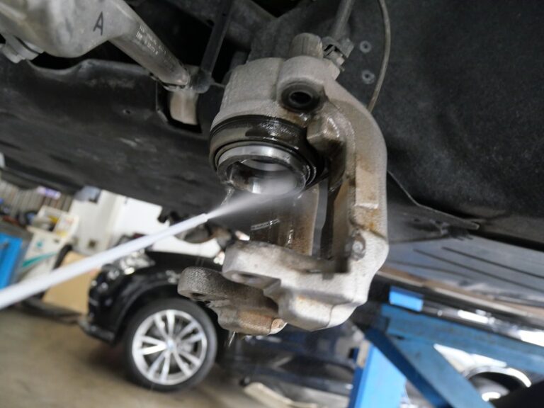 キャリパーシールからのフルード滲みの点検を行いキャリパーまわりの洗浄を行います