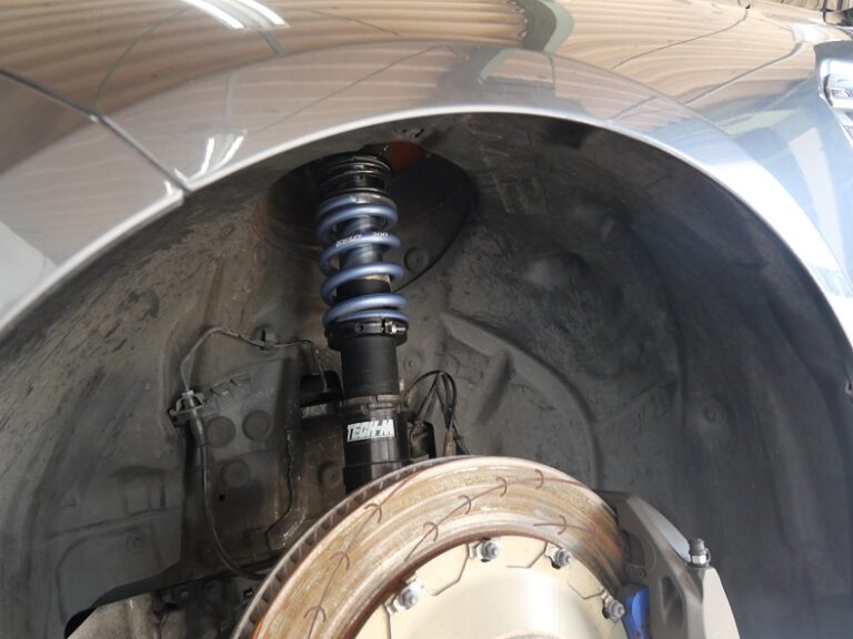 完成して届いた車高調を車両に取り付けしアライメント調整と車高調製を行います。