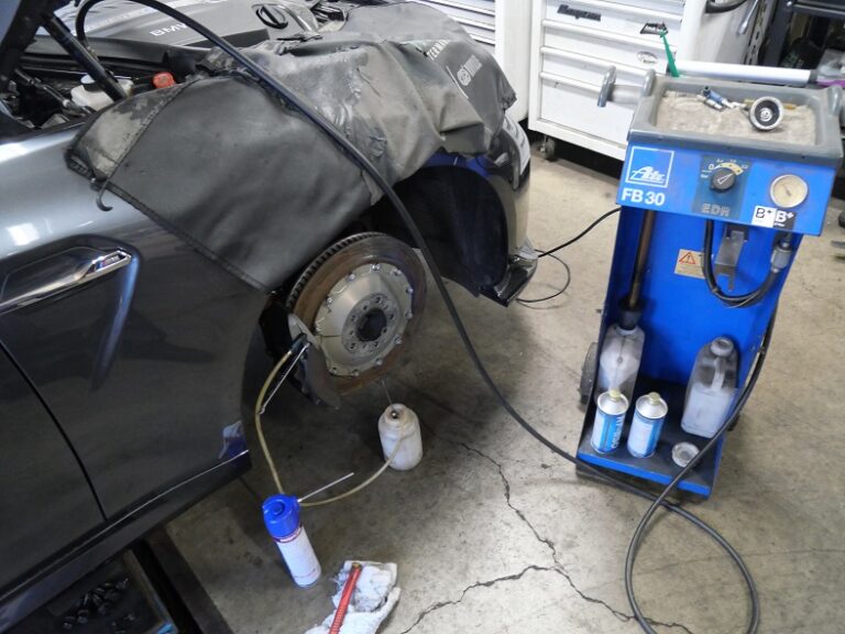 圧送チャンジャー使用してフルード交換、エア抜きを行います。フルードは、エンドレスRF650にて交換しました。